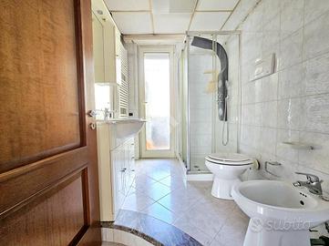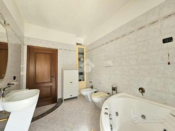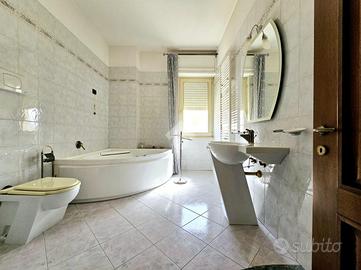 La zona notte è composta da una camera matrimoniale, due camere singole, un bagno finestrato con vasca idromassaggio ed un bagno finestrato con box doccia, che consente l'accesso alla veranda.