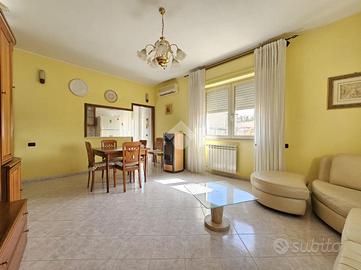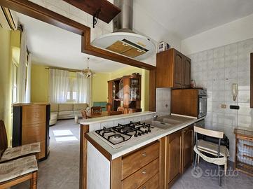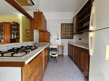 Si accede tramite porta blindata nel disimpegno che separa la zona giorno dalla zona notte. Dall'ingresso si arriva al soggiorno con cucina a vista accessoriata da una penisola in muratura dove trova spazio il piano cottura, dalla quale si può usufruire di un balcone.