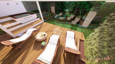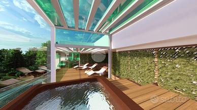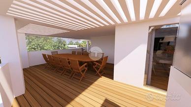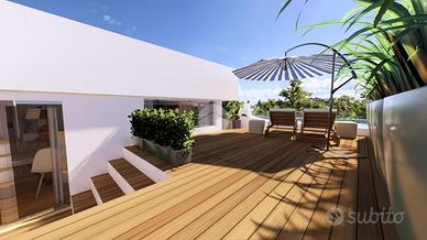 In una delle vie più richieste della città di Quartu, sorge il 'Cristopher Palace', una residenza esclusiva che unisce sostenibilità ed eleganza contemporanea composto da tre piani (primo, secondo e attico) e piano pilotis. Ogni unità è progettata per soddisfare le più elevate esigenze abitative di una vasta tipologia di clienti. Al piano attico sarà presente la 'perla' dello stabile: un quadrivano di 120mq calpestabili con 3 camere, doppio bagno e ampia superficie esterna con zona solarium e predisposizone per tenda solare esterna elettrica, piscina di 25mq a sfioro e una piscina Jacuzzi che rende la proprietà ancora più affascinante ed esclusiva. Gli interni degli appartamenti sono un mix di design e qualità: i pavimenti interni saranno realizzati in parquet prefinito, quelli delle terrazze/verande saranno invece in grés impreziosite da illuminazione esterna con faretti led e posa di piante su vaso. I rivestimenti dei bagni saranno eseguiti a tutta altezza con piastrelle ceramiche effetto marmo. Le apparecchiature igienico sanitarie saranno in ceramica di colore bianco filo muro complete di rubinetterie e lavabo con specchiera. Verrà installato uno scaldabagno a pompa di colore a basso consumo da 110L. Portoncino blindato e infissi bianchi con gas argon per garantire maggior isolamento termico e acustico. L'impianto domotico sarà del tipo Smart con applicazione sul cellulare e consentirà la gestione delle avvolgibili elettriche e delle luci. Videocitofono a colori con apriporta elettrico. Presente l'impianto fotovoltaico da 6,5 kW con batteria di accumulo da 5Kw. La soluzione avrà un ingresso carrabile motizzato indipendente con la possibilità di parcheggiare due autovetture. Tutte le unità avranno a disposizione una cantina. Nel primo e secondo piano sono presenti bivani a partire da €250.000 e trivani a partire da €360.000.