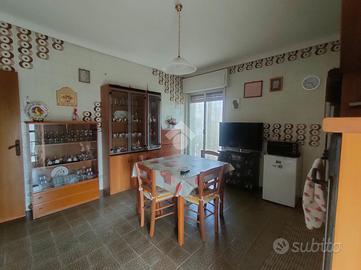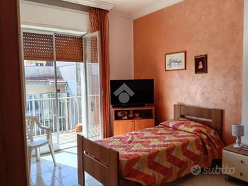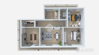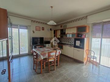 L'immobile, luminoso e ben distribuito, è composto da: una cucina abitabile con annesso doppio servizio, soggiorno accogliente, due camere matrimoniali, una cameretta, bagno, ampio balcone angolare ideale per pranzi, cene e momenti di relax all'aperto.