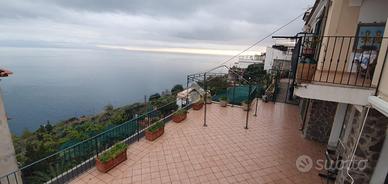 RAVELLO - Elegante e luminoso appartamento recentemente ristrutturato, situato nella zona più panoramica del paese, con vista mozzafiato sul mare. L'immobile si compone di un ampio soggiorno, una camera matrimoniale, una cameretta, due bagni moderni e una cucina abitabile. Completa la proprietà un terrazzo di circa 40 mq. L'accesso all'appartamento è facile e comodo, con soli 50 gradini che conducono direttamente dalla strada. Ottima opportunità come investimento grazie alla sua posizione privilegiata e al suo potenziale.