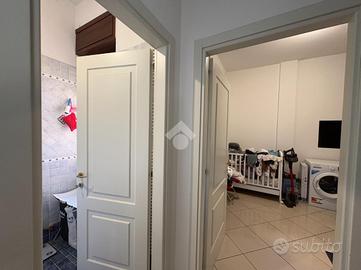 RAVENNA, zona SAN BIAGIO: Appartamento sito al quinto piano di una palazzina di sette, servito da ascensore con due camere da letto, studio, ampia zona giorno e garage di proprietà. Appena varcata la soglia, si viene accolti da un disimpegno che conduce direttamente all'ampio soggiorno, cuore della zona giorno. Adiacente, troviamo la cucina abitabile, un ambiente pratico e funzionale con accesso diretto a un comodo balcone. Un notevole valore aggiunto è rappresentato dallo studio, situato immediatamente alla sinistra dell'ingresso, ideale come locale per l'home office o come spazio hobby. Il corridoio separa in modo netto la zona giorno dalla zona notte. Qui si trovano il bagno finestrato completo di box doccia, la camera singola e la camera matrimoniale. A completare la proprietà, al piano terra, è incluso un comodo garage di proprietà, elemento essenziale in città. Questa soluzione combina la praticità del piano alto, che garantisce ottima luminosità e tranquillità, con la comodità dei servizi della zona in cui si trova.