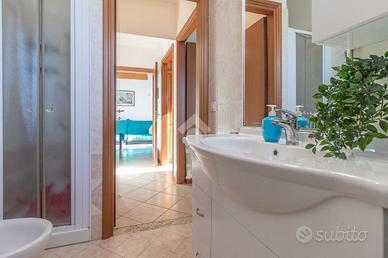 Al piano terra troviamo l'area cortilizia con ingresso indipendente; al primo piano terrazzo abitabile in cui poter pranzare, soggiorno, cucinotto separato, camera da letto matrimoniale, secondo balcone con affaccio sul verde e bagno finestrato con box doccia;