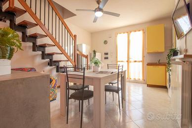 LIDO DI SAVIO: Proponiamo appartamento disponibile per la STAGIONE ESTIVA, a pochi passi dal mare e dai servizi della località. Soluzione al primo piano con giardino e posto auto, composta da soggiorno con angolo cottura e terrazzo, camera matrimoniale, camera singola e bagno con box doccia. Tramite scala interna raggiungiamo il secondo piano composto da una terza camera da letto con letto matrimoniale e terrazzo abitabile. Dispone di lavatrice, forno, aria condizionata e tv. Non è consentito fumare in casa. Condizioni spese: euro 200,00 cauzione (riconsegnati previo sopralluogo per inesistenza di danni), tassa di soggiorno (euro 1,50 a persona al giorno per i primi 5 giorni) . Contattaci per maggiori informazioni