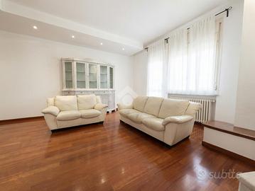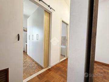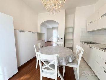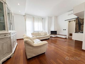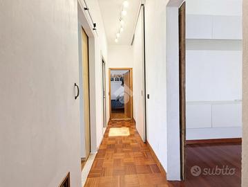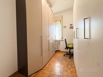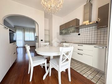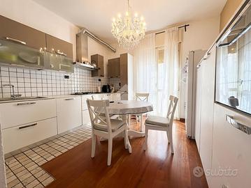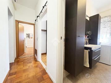 In una posizione comoda e tranquilla, proponiamo in vendita un appartamento luminoso, accogliente e ben distribuito l terzo piano con montacarichi. Entrando si viene accolti da un ampio soggiorno molto luminoso, caratterizzato da un bel camino che crea un'atmosfera calda e conviviale. Questo ambiente, grazie alle sue generose dimensioni e alla luce naturale, risulta perfetto come cuore della casa. Direttamente dal soggiorno si accede alla cucina abitabile, funzionale e ariosa, dotata di balcone che permette di godere di uno spazio esterno privato, ideale per la colazione o per una cena all'aperto. Un pratico corridoio distributivo conduce alla zona notte, composta da una camera matrimoniale spaziosa, una camera singola e uno studio luminoso e versatile, perfetto come camera per bambini, studio o camera degli ospiti. Inoltre troviamo due bagni, uno con doccia e uno con vasca. Conclude la soluzione il garage doppio di proprietà al piano terra. L'appartamento si presenta in ottime condizioni, con finiture curate che mescolano armoniosamente lo stile moderno e un tocco rustico, impreziosito da parquet in legno posato in tutti gli ambienti. Gli spazi sono ben organizzati, luminosi e davvero funzionali, senza sprechi. Un'abitazione completa di tutti gli spazi fondamentali, pronta da vivere e con un ottimo equilibrio tra comfort e praticità, ideale per una coppia o per una piccola famiglia che desidera vivere vicino al centro senza rinunciare alla tranquillità.