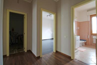 L'appartamento, ristrutturato nel 2020, si apre su un accogliente disimpegno che conduce alla cucina abitabile, la quale dispone di un balcone comunicante con il salone e una delle camere, dove troverete anche due comode zone di deposito. Successivamente troviamo il luminoso salone. Qui si potrebbe considerare l'idea di abbattere il muro divisorio per creare un unico e ampio ambiente.