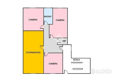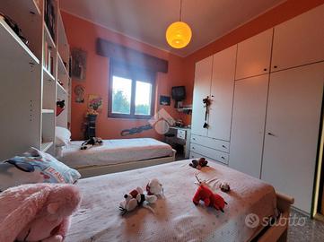 Internamente è composto da ingresso su disimpegno, cucina/soggiorno, tre camere da letto, bagno con box doccia e ripostiglio.