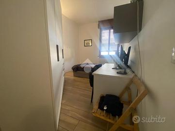 L'appartamento è composto da un accogliente soggiorno con angolo cottura, ideale per momenti di convivialità e relax. Proseguendo, si trova una disposizione funzionale con tre camere da letto: due matrimoniali, di cui una dotata di bagno in camera, e una camera 3/4, perfetta anche come studio o stanza singola. Un secondo bagno completa la soluzione, offrendo comfort e praticità.