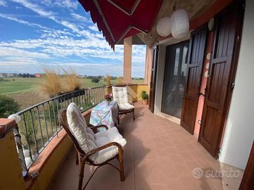 Costruito nel 1998, l'immobile si presenta in ottime condizioni, pronto per accogliere una nuova famiglia. Uno dei punti di forza è il terrazzo abitabile, perfetto per momenti di relax all'aperto, circondato dal verde che caratterizza la zona. La disposizione interna comprende quattro locali, di cui 3 camere e 2 bagni, garantendo ampie possibilità di personalizzazione degli ambienti. La posizione strategica consente di godere della tranquillità della campagna, senza rinunciare alla comodità dei servizi cittadini facilmente raggiungibili.