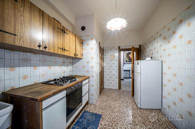 L'ingresso si apre su un disimpegno che divide la zona giorno in 2 locali,ampio soggiorno e cucina abitabile con ripostiglio e accesso al balcone che collega la cucina con il soggiorno esposto sul verde condominiale per godersi momenti di tranquillità all'aria aperta, con possibilità di creare una nuova zona giorno integrando cucina e soggiorno creando un locale molto ampio moderno e luminoso.