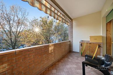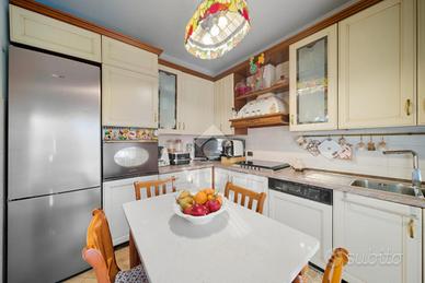 L'appartamento comprende un ampio soggiorno e cucina separata con accesso alla prima loggia, tre camere da letto, di cui due matrimoniali, due bagni e una seconda loggia.