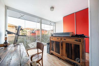Al piano superiore si ha una camera padronale, con cabina armadio, e una zona studio con accesso diretto a loggia abitabile chiusa da vetrata, adibita a palestra.