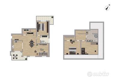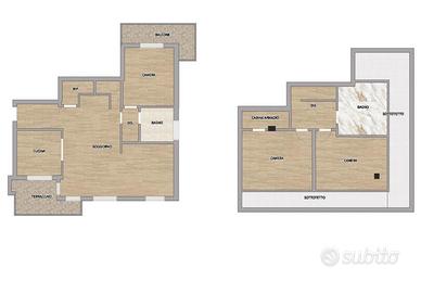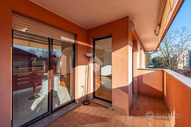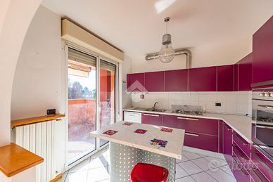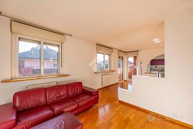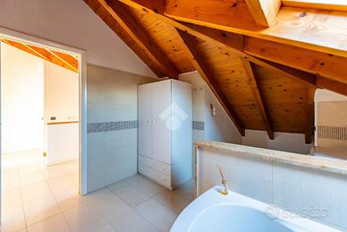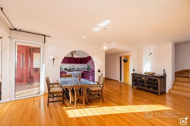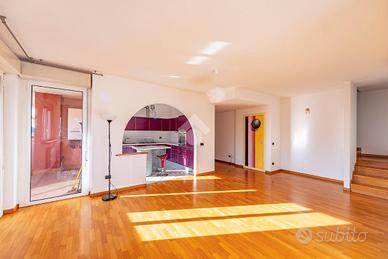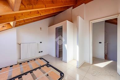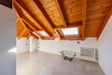 L'appartamento di 160 Mq. si trova al terzo ed ultimo piano di una palazzina inserita in un elegante residence composto da sei palazzine. Disposto su due livelli abitativi, l'immobile offre spazi ampi e ben distribuiti, ideali per chi cerca comfort e funzionalità. L'ingresso si apre nella zona che comprende un luminoso soggiorno e una cucina abitabile; entrambi gli ambienti danno accesso a un terrazzino, perfetto per godere di momenti di relax all'aperto. Attraverso un disimpegno, si accede alla camera matrimoniale dotata di balcone privato e al bagno con la doccia. Tramite una scala interna si raggiunge il piano mansardato, rifinito con travi a vista e dotato di velux. Qui si trovano due camere da letto, una delle quali con cabina armadio, e un ampio bagno con vasca. L'appartamento è provvisto di aria condizionata. Completa la proprietà un pratico box auto doppio e una cantina, entrambi posti al piano interrato e raggiungibili anche attraverso l'ascensore condominiale. Il residence si trova in un'area residenziale, ben collegata ai principali servizi e alle vie di comunicazione, offrendo comodità e facilità di accesso a tutte le necessità quotidiane. La stazione Trenord è facilmente raggiungibile a piedi. Inoltre, la presenza di ampi spazi verdi comuni e di un'area giochi per bambini rende questo contesto ideale anche per le famiglie. Con un'atmosfera accogliente e una disposizione degli ambienti studiata per ottimizzare il comfort abitativo, questo appartamento rappresenta una scelta eccellente per chi cerca un'abitazione elegante e funzionale.