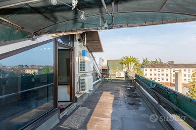 Al terzo ed ultimo piano, proponiamo QUADRILOCALE composto da cucina separata abitabile, soggiorno attraverso il quale si accede al comodo balcone, tre camere matrimoniali e bagno finestrato con doccia, dotato di MANSARDA separata di ampie dimensioni con TERRAZZA panoramica di circa 50 mq, abitabile come se fosse un bilocale separato in quanto dotata anch'essa di portoncino blindato,. Completano la soluzione GARAGE singolo e CANTINA. L'immobile è stato completamente RISTRUTTURATO, ed è interamente riscaldato dalla stufa a pellet (e' però possibile riscaldarlo anche con la caldaia ancora presente), infissi doppio vetro pvc, tre condizionatori/pompe di calore. Spese condominiali basse ( circa 500 €/anno + consumo dell'acqua).