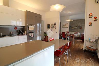 L'ingresso è direttamente nella zona giorno divisa in zona living e sala da pranzo, i locali sono resi luminosi dalla finestra e dalla porta finestra dalla quale si accede al terrazzo. L'ampia cucina abitabile è anch'essa resa luminosa dalla porta finestra dalla quale si accede al terrazzo.