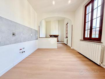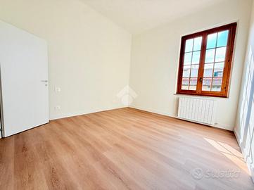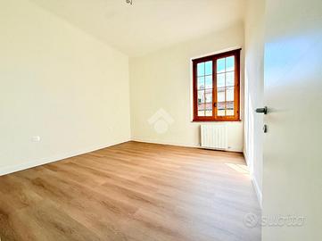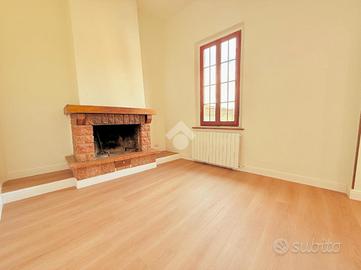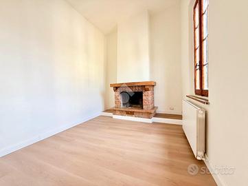 Luminoso open-space composto da cucina abitabile e soggiorno con camino. Zona notte con due camere da letto matrimoniali.