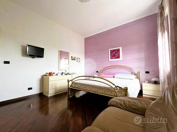 La zona notte è composta da una camera matrimoniale di ampie dimensioni, una camera doppia ideale per bambini o ospiti e una terza camera singola, adatta anche come studio o stanza jolly. Il bagno principale è finestrato e dotato di box doccia, mentre il secondo bagno, cieco, è attualmente adibito a servizio-lavanderia.
