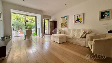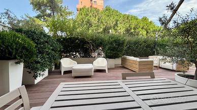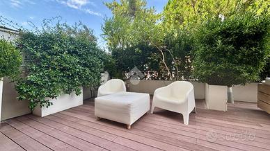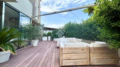 Fiore all'occhiello dell'appartamento è il grande terrazzo di 90 mq, un vero e proprio spazio all'aperto che diventa naturale estensione della zona giorno perfetto per pranzi, cene, momenti di relax o per ospitare amici e familiari.