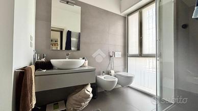 L'appartamento si apre su un'ampia zona giorno, perfettamente illuminata, che accoglie un elegante soggiorno e una cucina separata e abitabile. La zona notte comprende una spaziosa camera matrimoniale con bagno privato,una cameretta, un secondo bagno con doccia, una lavanderia attrezzata, un pratico ripostiglio e uno studio, che può essere utilizzato anche come terza camera o spazio polifunzionale.