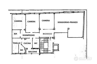 La zona notte comprende quattro camere da letto ben distribuite, tre delle quali si trovano lungo il corridoio principale e una è collocata accanto alla cucina. Le dimensioni generose di questi ambienti consentono di adibirli a matrimoniali, singole o studi, offrendo grande flessibilità nell'utilizzo. Sono presenti due bagni, uno situato in prossimità della cucina e uno nella parte sinistra dell'appartamento, entrambi facilmente accessibili dalle camere.