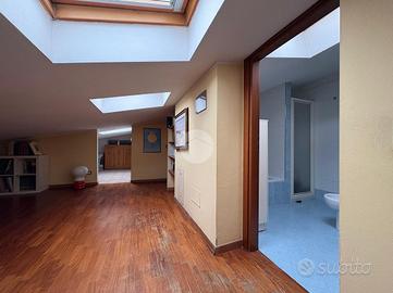 Salendo al quarto piano, troviamo un ambiente mansardato dove è stata ricavata una terza camera da letto e un bagno aggiuntivo, perfetto come spazio indipendente per ospiti, studio o zona relax.
