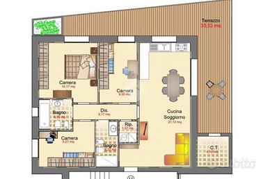 VISERBA In piccola palazzina di prossima realizzazione, attico composto da soggiorno con angolo cottura, tre camere da letto, doppi servizi e ripostiglio. L'immobile è dotato di un ampio terrazzo perimetrale, ideale per vivere all'aria aperta. Completano la proprietà un box auto al piano terra. Finiture di alta qualità, con caratteristiche costruttive di ultima generazione, per garantire comfort e risparmio energetico. Informazioni in ufficio.