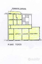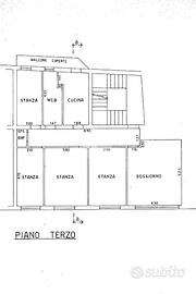 l'appartamento si trova al terzo piano di un edificio nel cuore del centro storico di Rimini ed è caratterizzato da una distribuzione interna ampia e ben articolata. L'ingresso si apre su un corridoio che accompagna verso gli ambienti principali della casa.
