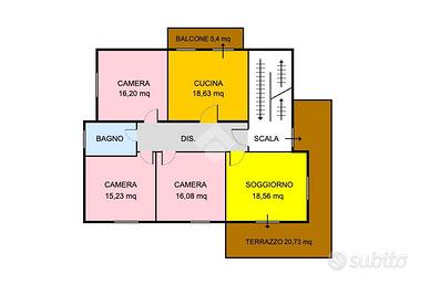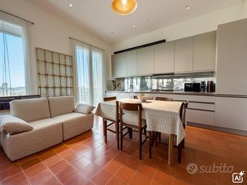 Entrando, si è accolti da una zona giorno particolarmente ampia, organizzata in cucina abitabile e soggiorno, entrambi serviti da un proprio terrazzo privato, mentre la zona notte si compone di tre camere matrimoniali da 16 mq e di un bagno finestrato con vasca.