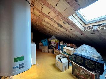 Il piano superiore, sempre collegato tramite scala in muratura, è suddiviso in due ampi locali ad oggi allo stato grezzo e in un ripostiglio, attualmente adibito a bagno-lavanderia.