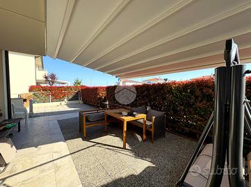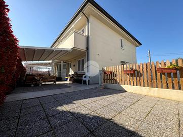 Viserba: A4, indipendenza e zero lavori: la casa che stavi aspettando! In zona Fiera Nuova, proponiamo in vendita una villa a schiera in Classe Energetica A4, il massimo livello di efficienza, sinonimo di consumi ridotti, comfort elevato e qualità costruttiva superiore. Costruita nel 2019, rappresenta la soluzione ideale per chi desidera una casa moderna, efficiente e pronta da vivere.L'abitazione si distingue per una distribuzione degli spazi funzionale e versatile. Al piano terra si sviluppa una ampia e luminosa zona giorno con soggiorno e cucina, perfetta per la vita quotidiana e per accogliere ospiti, affiancata da un bagno finestrato con doccia moderna e da una camera matrimoniale al piano, soluzione sempre più richiesta per praticità e flessibilità. Al piano superiore si trova la zona notte, composta da due camere da letto e un secondo bagno con doccia, pensata per garantire comfort e privacy a tutta la famiglia.Il piano interrato ospita un garage doppio di circa 40 mq, spazioso e sicuro, dotato di tre pompe antiallagamento, un dettaglio importante che aggiunge valore e tranquillità. All'esterno, la proprietà è impreziosita da una ampia corte privata piastrellata con accesso indipendente su due vie, perfetta per momenti di relax all'aperto, cene estive o per chi desidera uno spazio esterno pratico e riservato. Dal punto di vista tecnologico ed energetico, l'immobile offre dotazioni di alto livello:riscaldamento a pavimento, impianto fotovoltaico, infissi in PVC doppio vetro e murature termiche coibentanti. Presenti inoltre: videocitofono, predisposizione antifurto, predisposizione aria condizionata in soggiorno e in tutte le camere, predisposizione aspirazione centralizzata su entrambi i livelli, oltre a sistema di videosorveglianza con telecamere esterne e nel garage e tenda da sole motorizzata con telo anti-raggi. Spese condominiali contenute (circa 500 €/anno). Una soluzione perfetta per chi cerca indipendenza, alta efficienza energetica e comfo