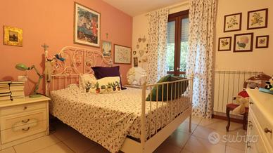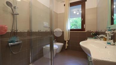 Nella zona notte, troviamo due luminose camere entrambe con accesso al terrazzo, un comodo studio e due bagni: il primo ampio e finestrato mentre il secondo cieco e di dimensioni minori.