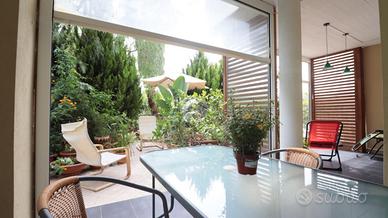 L'appartamento, di ampia metratura è composto da soggiorno con cucina open-space con doppio accesso diretto alla zona esterna, dove troviamo due portici per vivere momenti in relax non rinunciando alla massima privacy.