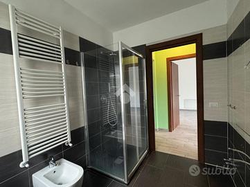 Il bagno è finestrato e dotato di piatto doccia, presenta anche gli attacchi della lavatrice.