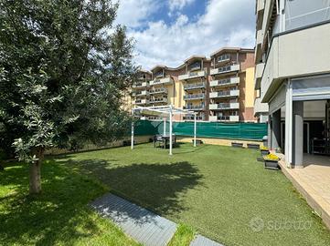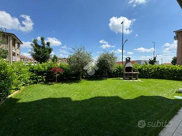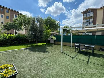 La porzione di giardino collegata alla zona giorno è decorata con un grazioso prato inglese sintetico, mentre sul retro, vicino alle due stanze, è presente un barbecue in muratura, ideale per passare del tempo in compagnia durante le giornate soleggiate. E' presente l'impianto di irrigazione automatica.
