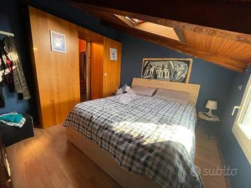 Villaggio Sangone, in villa trifamiliare, affascinante appartamento mansardato di 144 metri quadrati calpestabili, con travi a vista, composto da ingresso, due camere da letto, salone, cucina abitabile a vista, cabina armadi, disimpegno, bagno e grande ripostiglio nel sottotetto. Situato al 2 e ultimo piano, questo immobile caratteristico, costruito nel 1991 e ristrutturato nel 2013, offre un'ampia metratura ideale per chi cerca spazio e comfort. Il terrazzo di 36 metri quadrati, esposto a sud, regala una vista panoramica mozzafiato sul Monviso, perfetto per momenti di relax all'aperto. Il giardino privato di circa 100 metri quadrati, aggiunge un tocco di verde e tranquillità, ideale per chi ama la natura e per chi necessita di eventuali posti macchina privati. La posizione nel villaggio Sangone garantisce un contesto residenziale sereno, a pochi passi dal parco fluviale, offrendo la possibilità di piacevoli passeggiate e attività all'aria aperta. Questa proprietà rappresenta un'opportunità unica per chi desidera vivere in un ambiente storico, senza rinunciare alle comodità moderne e alla bellezza del paesaggio circostante.