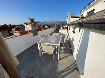 IN TRATTATIVA Villaggio Sangone, in villa trifamiliare, affascinante appartamento mansardato di 144 metri quadrati calpestabili, con travi a vista, composto da ingresso, due camere da letto, salone, cucina abitabile a vista, cabina armadi, disimpegno, bagno e grande ripostiglio nel sottotetto. Situato al 2 e ultimo piano, questo immobile caratteristico, costruito nel 1991 e ristrutturato nel 2013, offre un'ampia metratura ideale per chi cerca spazio e comfort. Il terrazzo di 36 metri quadrati, esposto a sud, regala una vista panoramica mozzafiato sul Monviso, perfetto per momenti di relax all'aperto. Il giardino privato di circa 100 metri quadrati, aggiunge un tocco di verde e tranquillità, ideale per chi ama la natura e per chi necessita di eventuali posti macchina privati. La posizione nel villaggio Sangone garantisce un contesto residenziale sereno, a pochi passi dal parco fluviale, offrendo la possibilità di piacevoli passeggiate e attività all'aria aperta. Questa proprietà rappresenta un'opportunità unica per chi desidera vivere in un ambiente storico, senza rinunciare alle comodità moderne e alla bellezza del paesaggio circostante.