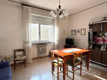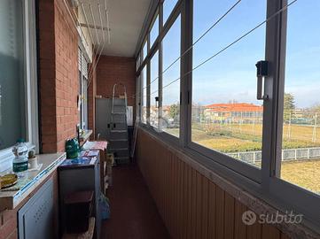 Appartamento di generose dimensioni, costruito negli anni '70, situato al primo piano. L'ingresso conduce a tutti gli ambienti della casa. La zona giorno è composta da una cucina abitabile con accesso al balcone verandato e da un luminoso soggiorno. La zona notte offre due camere da letto spaziose, ben squadrate e facilmente arredabili. Il bagno finestrato, completo di box doccia, garantisce comfort e funzionalità. Completa la proprietà un comodo ripostiglio e una cantina al piano interrato. Nel cortile condominiale è presente un ampio parcheggio. L'immobile si trova in una zona servita, comoda ai principali servizi e alle scuole. Libero subito.