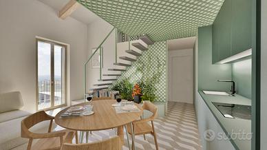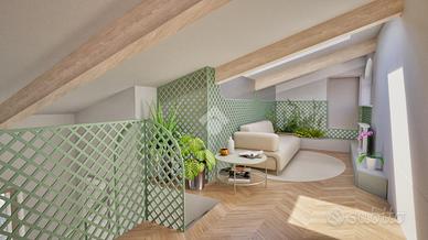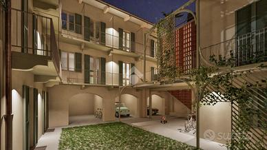 Nel centro storico del paese in piccolo contesto di sole quattro unità abitative interessato da un intervento di ristrutturazione totale, appartamento al secondo ed ultimo piano con riscaldamento autonomo e box auto. L'alloggio è composto di ingresso su zona pranzo con cucina a vista, due camere da letto e doppi servizi. Dalla zona giorno si sviluppa la scala interna che conduce al soppalco, sfruttabile come zona relax o studio, che conferisce all'intera soluzione un carattere attuale e moderno. La soluzione gode di un balcone su tutta la lunghezza dell'appartamento e di un terrazzo privato ideale per passare piacevoli momenti di relax all'aria aperta. A completare la proprietà troviamo, due locali di sgombero/ripostiglio nel sottotetto ed un box auto privato. La posizione centralissima, il contesto curato e la gestione autonoma delle quattro unità abitative sono valori aggiunti di questa soluzione. La consegna dell'immobile è prevista per l'autunno 2026 ed è attualmente possibile scegliere le finiture interne per personalizzare l'immobile.
