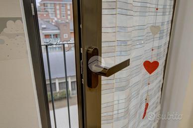 VIA BRENTA : in stabile di recente costruzione privo di barriere architettoniche, con possibilità di autorimesse al piano interrato e gradevole giardino condominiale, proponiamo appartamento sito ad un piano alto con balconi spaziosi e ben sfrutttabili. L'immobile è composto da un soggiorno living con affaccio su ampio balcone, cucinotto semi-abitabile, disimpegno, due camere da letto e bagno con finestra. Dotato di infissi con triplo vetro, zanzariere, portoncino blindato e climatizzatore, la soluzione è adatta a chi vuole unire la praticità degli spazi con le comodità di tutti i primari servizi, essendo ubicato nei pressi del Corso Francia, ma in un contesto tranquillo e silenzioso al tempo stesso. Al piano interrato comoda cantina privata.