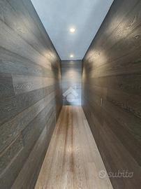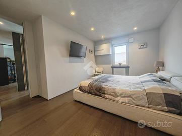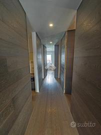 Un disimpegno, caratterizzato da particolari e ricercate porte a scomparsa rivestite in rovere ci accompagna; sulla sinistra al bagno con vasca, sulla destra a un comodo ripostiglio/lavanderia, mentre più avanti giungiamo alla zona notte. Quest'ultima è composta da tre ampie camere di cui una padronale con bagno privato e box doccia.