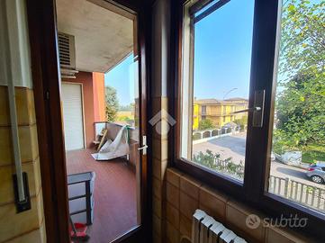 L'appartamento affaccia dal lato est sul giardino condominiale e dall'altro (ovest) sull'aperta campagna, donando all'appartamento molta luce e poco rumore dovuto al traffico.