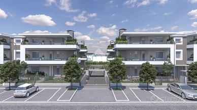 RODENGO SAIANO - Immagina di vivere in una residenza dove eleganza e innovazione si incontrano per offrirti un'esperienza abitativa senza paragoni. Nel cuore di Rodengo Saiano, nell'area residenziale più moderna del paese, di fronte al Ciclodromo e a pochi passi da tutti i servizi di prima necessità, nasce un complesso esclusivo pensato per chi cerca il massimo in termini di comfort e vivibilità. Un progetto composto da 24 unità, ripartite in 4 contesti da 6 appartamenti ciascuno, suddivisi in piano terra, primo e attico, dove l'architettura crea una perfetta armonia tra interni ed esterni. Questa residenza non è solo bellezza: ogni dettaglio è stato studiato per garantire il massimo dell'efficienza energetica e della sostenibilità. Costruita in classe energetica A4, con un avanzato sistema fotovoltaico, assicura consumi ridotti e un comfort abitativo elevato. La tecnologia è al servizio del benessere quotidiano, grazie a un impianto di riscaldamento a pavimento con una regolazione della temperatura, garantita per ogni ambiente e a un impianto di raffrescamento con pompa di calore. Inoltre, l'attenzione all'isolamento termico e acustico rende ogni ambiente perfetto in ogni stagione, proteggendoti da rumori e sbalzi di temperatura. Nonostante i contesti siano di sole sei unità abitative, è presente l'ascensore che collega direttamente ogni appartamento al piano interrato, ove sono presenti locali cantina e gli spaziosi box auto, garantendo un accesso comodo e senza barriere. L'abitazione al primo piano è caratterizzata dalla splendida terrazza di oltre 45 mq, perfetta per trascorrere piacevoli momenti all'aria aperta, in compagnia del camino con area barbecue, o semplicemente per godersi la tranquillità dello spazio esterno e la bellezza delle fioriere laterali. L'ampia zona living di quasi 32 mq calpestabili con cucina a vista è il connubio perfetto tra comfort e luminosità e si fonde armoniosamente con il reparto notte, pensato per offrire massima privacy: ca