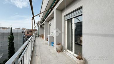 Attico signorile con terrazzo perimetrale in Viale della Primavera Scopri un'opportunità unica nel cuore di Viale della Primavera! Proponiamo in vendita un esclusivo attico di 100 mq, situato all'interno di uno stabile signorile con ascensore, arricchito da uno spettacolare terrazzo perimetrale di 50 mq che regala una vista aperta e una luminosità senza pari. L'appartamento, in buono stato di manutenzione, vanta una quadrupla esposizione che garantisce luce naturale in ogni ambiente. La distribuzione interna è funzionale e spaziosa: Ampio ingresso con finestra, perfetto per accogliere ospiti con stile; Soggiorno luminoso, ideale per momenti di relax; Tre camere da letto confortevoli; Cucina abitabile, pratica e accogliente; Corridoio con ripostiglio per ottimizzare gli spazi; Bagno con finestra, per un'ottima ventilazione; Il terrazzo perimetrale, vero gioiello della proprietà, circonda l'appartamento e offre uno spazio versatile per cene all'aperto, momenti di relax o per creare il tuo angolo verde in città. Comfort e modernità: Infissi in alluminio con doppio vetro per un eccellente isolamento termico e acustico; 3 climatizzatori Daikin caldo/freddo per un clima perfetto tutto l'anno; Riscaldamento centralizzato con contabilizzatori di calore per una gestione efficiente dei consumi. Libero subito, pronto per essere vissuto o personalizzato secondo i tuoi gusti. La posizione strategica in Viale della Primavera, ben collegata e vicina a tutti i servizi, rende questa soluzione ideale per famiglie o professionisti in cerca di prestigio e comodità. Non perdere l'occasione di vivere in un attico che unisce eleganza, spazio e funzionalità! Contattaci ora per fissare un appuntamento e lasciati conquistare da questa meravigliosa proprietà. Alcune immagini sono state generate da IA.