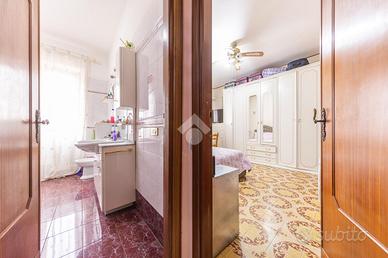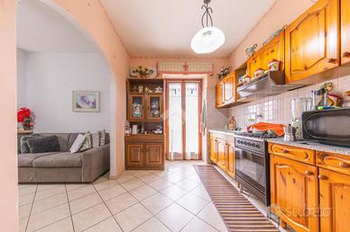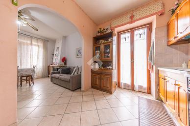 L'ingresso conduce direttamente nell'ampio salone con angolo cottura, un ambiente accogliente e ben illuminato, servito da un balconcino ideale come sfogo esterno.