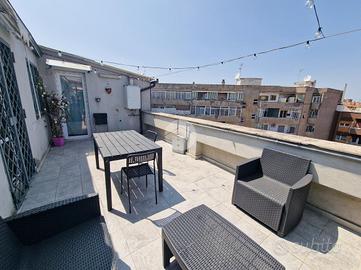 Nella principale e rinomata Via Tiburtina e, più precisamente a pochi passi dalla stazione metropolitana, in un contesto ben collegato e servito da numerose attività commerciali oltre agli spazi verdi per chi ama il relax e lo sport all'aria aperta ed ai collegamenti con il centro città grazie alla presenza di mezzi pubblici (bus, metro o tram, se specifici), e facile accesso alle principali arterie stradali, proponiamo in locazione breve un esclusivo attico al nono piano, completamente ristrutturato con finiture di pregio e progettato per offrire comfort ed eleganza in ogni dettaglio.