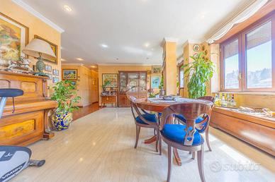 CORSO DI FRANCIA - Nel cuore di Corso di Francia, in una delle aree più centrali e richieste della Capitale, proponiamo in vendita un appartamento spazioso e ben tenuto, situato al terzo piano di una palazzina con servizio di portineria. L'immobile si presenta in buono stato conservativo e si distingue per la funzionalità e l'ottima distribuzione interna. L'ingresso si apre su un ampio salone doppio, ideale per accogliere e vivere momenti in pieno comfort. La cucina abitabile è dotata di una comoda zona lavanderia separata, pensata per ottimizzare la vita quotidiana. La zona notte è composta da tre camere da letto e due bagni finestrati, di cui uno en-suite, a servizio diretto della camera padronale. Elemento distintivo dell'appartamento è l'eccellente capacità contenitiva, grazie a sei armadi a muro perfettamente integrati e a un ampio soppalco. Presenti due balconi che garantiscono una piacevole luminosità durante tutto il giorno e una vista aperta sulla zona circostante. A completare la proprietà troviamo una cantina e un posto auto a rotazione per 9 mesi l'anno. Possibilità di acquisto di un box auto della stessa proprietà ad un prezzo aggiuntivo di 40.000. Questo appartamento rappresenta un'ottima soluzione abitativa per chi cerca spazio, comfort e posizione strategica, in un contesto urbano ricco di servizi, collegamenti e attività commerciali.