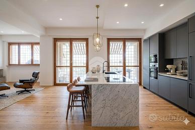 EUR PAVESE. 5° ed ULTIMO PIANO. In stabile in cortina in corso di ristrutturazione esterna, proponiamo appartamento UNICO SUL PIANO, in corso di ristrutturazione, con possibilità di personalizzazione delle finiture da concordare con l'acquirente e con il vantaggio di avere tempi di consegna dell'immobile finito molto brevi. Nel progetto gli ambienti dell appartamento sono stati divisi in maniera molto regolare, la zona giorno comprende un comodo salone con camino e cucina all americana con isola centrale, ed accesso al terrazzo con affaccio aperto; lungo il disimpegno si accede alla zona notte composta da tre camere da letto, di cui una con annessa cabina armadio e servizio, un secondo servizio ed un ripostiglio. Balcone vivibile. L appartamento gode di un ottima posizione estremamente silenziosa perche lontana dalla strada principale, con ampia facilità di parcheggio, e di un ottima esposizione al sole. inoltre come pertinenza abbiamo una cantina e due posti auto. Per maggori dettagli vi invitiamo a contattarci.
