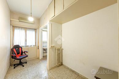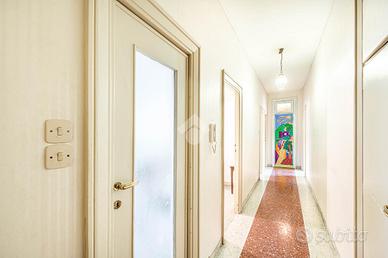 La soluzione si configura come uno spazioso quadrilocale composto da ampio ingresso, soggiorno, corridoio con armadio a muro, due camere da letto matrimoniali, cameretta con predizione servizio con finestra, cucina abitabile con tinello, ampio ripostiglio, servizio con vasca e finestra e tre balconi.