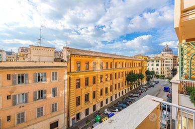FORNACI - Lasciandoci alle spalle il Colonnato di Piazza San Pietro, in una delle Vie più esclusive del quartiere, nella rinomata Via delle Fornaci, proponiamo in vendita piano alto panoramico con esclusiva vista Cupola di San Pietro.