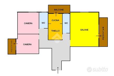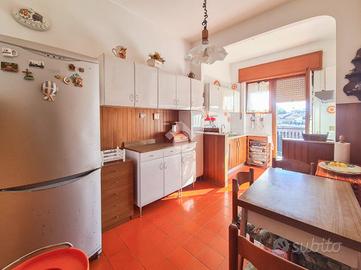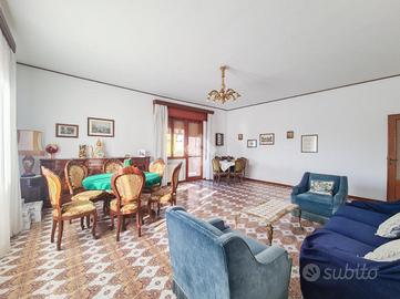 L'appartamento gode di generose metrature in tutti gli ambienti ed è composto da un ampio ingresso, salone doppio, cucina abitabile con tinello, disimpegno con armadio a muro e soppalchi, due camere matrimoniali, due bagni e tre balconi con tende da sole ed armadi in alluminio.